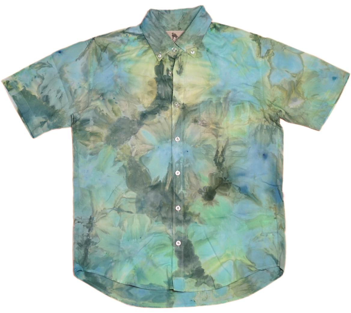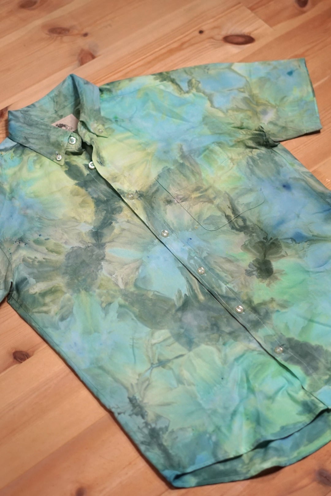タイダイ染めYシャツ 半袖- Mサイズ【オーロラ模様】
