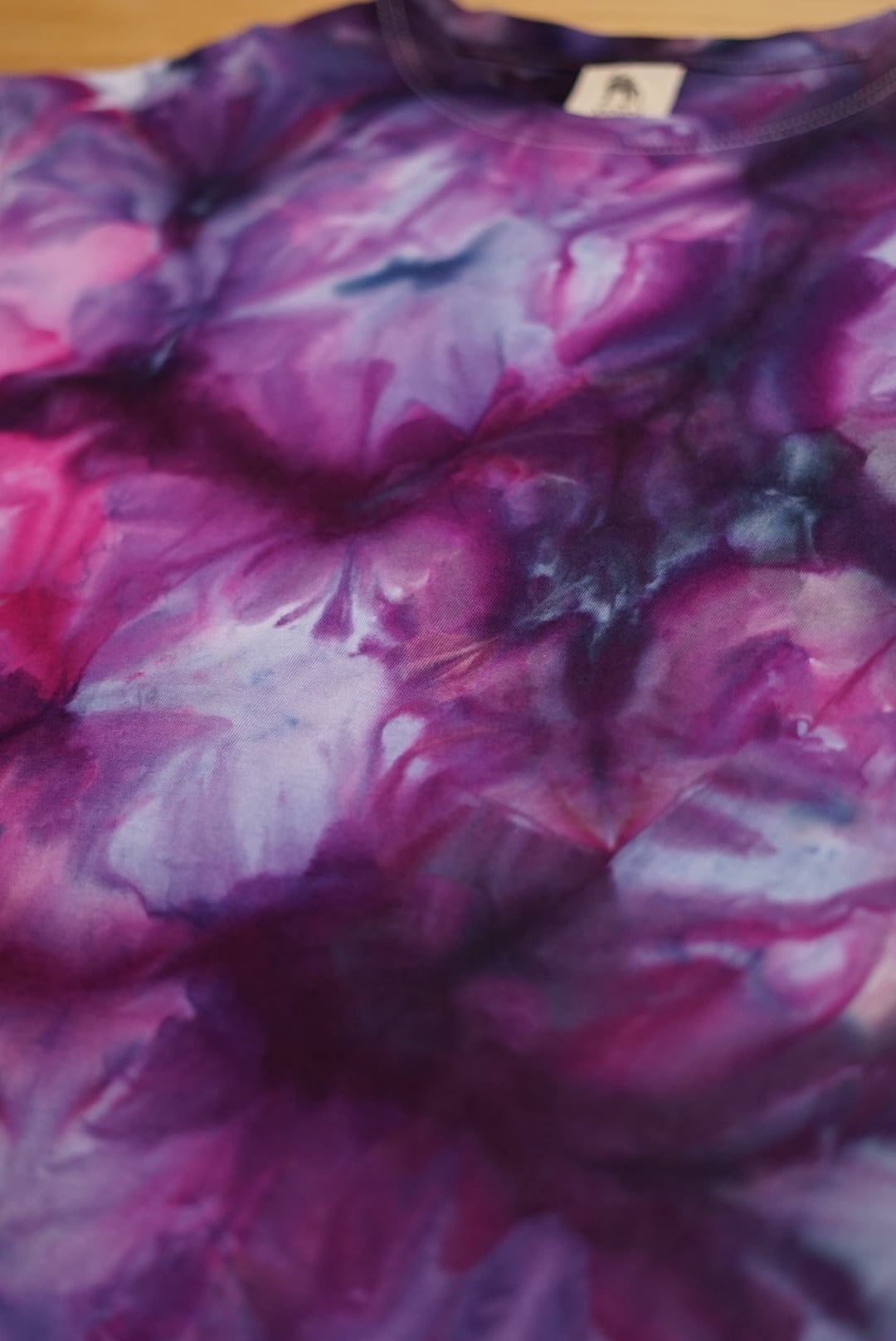 "アイスダイ"という技法で、染料を氷に溶かしながら色入れすることで、水彩画のようなオーロラ模様▪︎自然を表現しています!