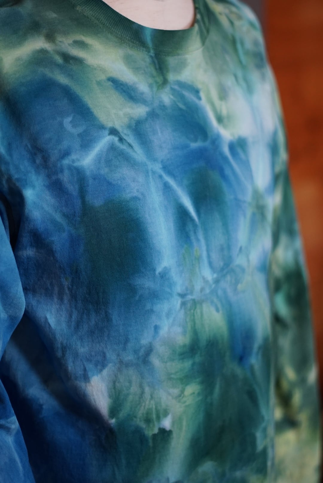 タイダイ染め 長袖Tシャツ - Lサイズ【オーロラ模様】
